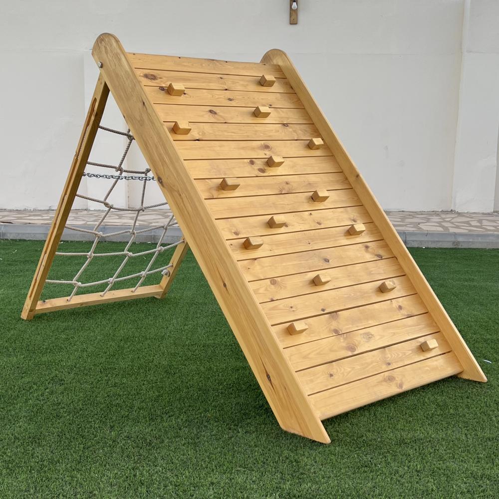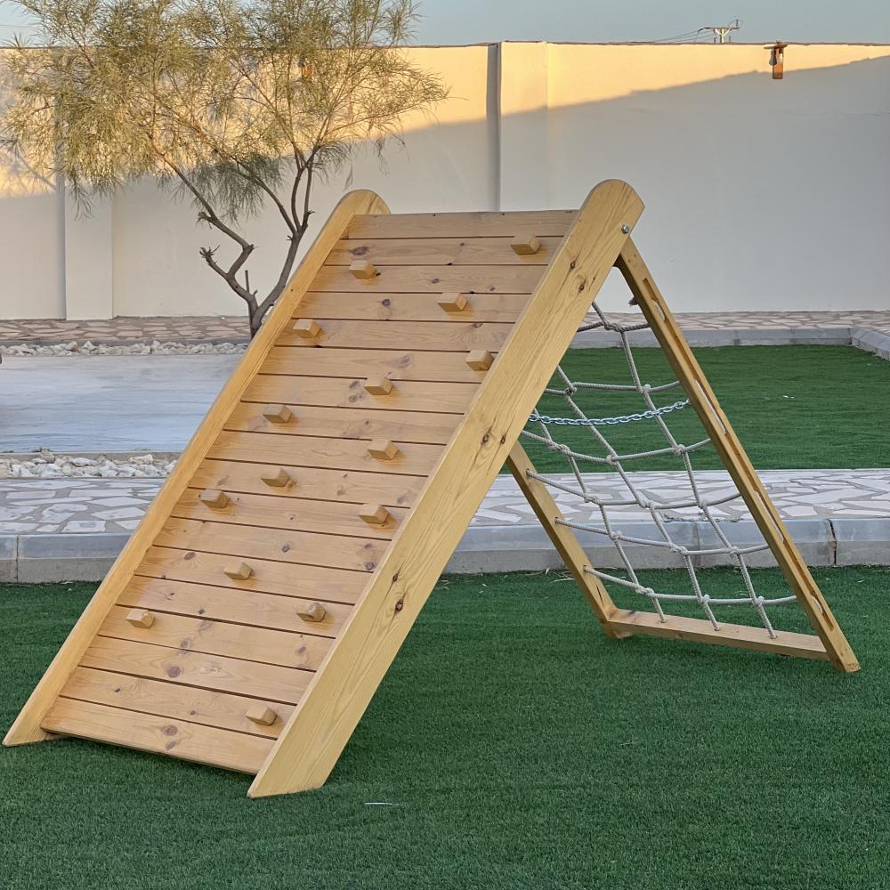 هرم التسلق الخارجي من ( الخشب الطبيعي مقاوم للشمس والمطر ) والمعالج بشكل أمن للاطفال