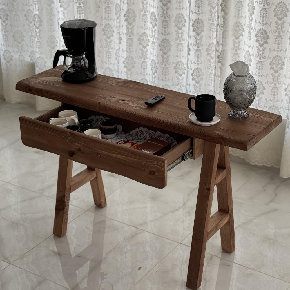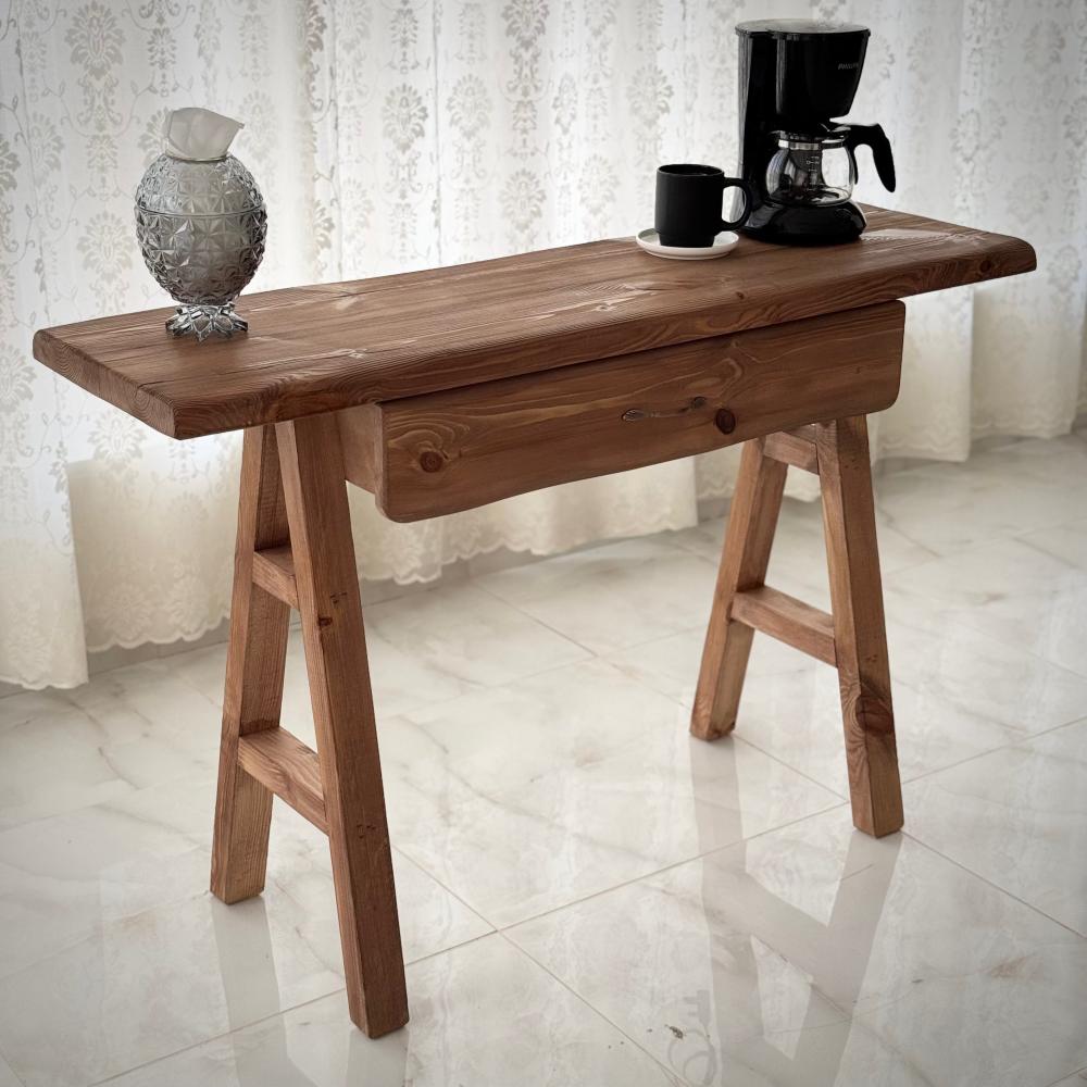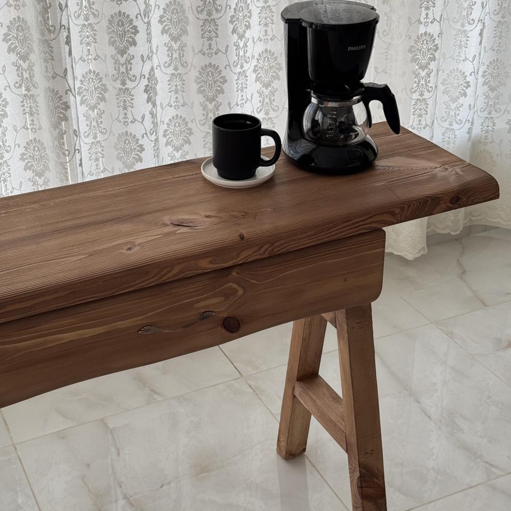طاولة ركن كفي تفصيل & قهوة ريفي بشكل مريح وأنيق من الخشب الطبيعي (صنوبر )المعتق ليظهر بهذا الشكل الجميل